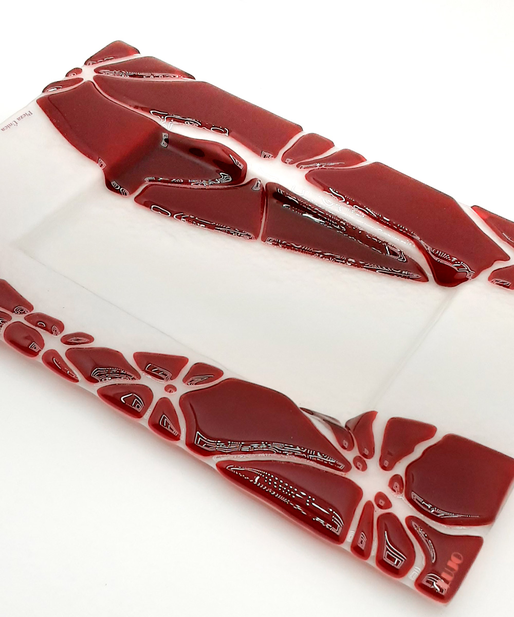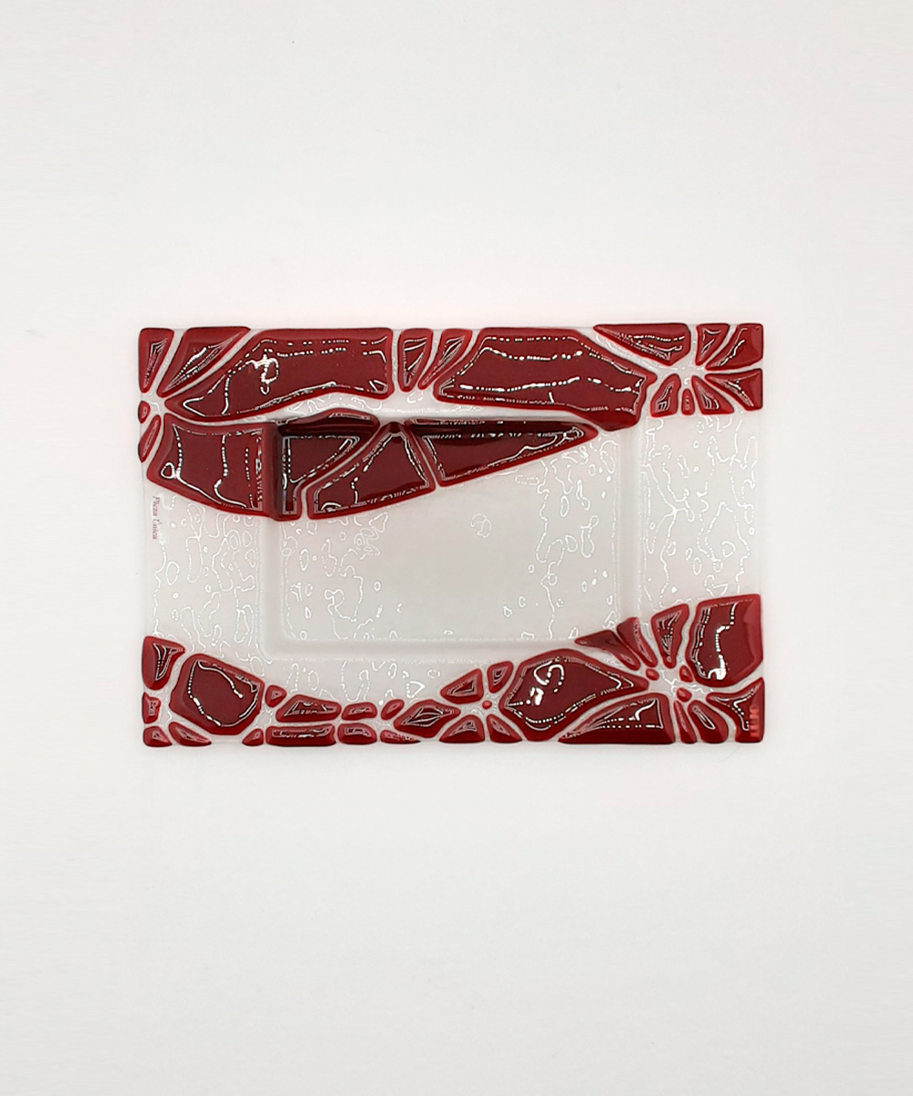 Bandeja fondo blanco colección «rotura» con detalle en granate.