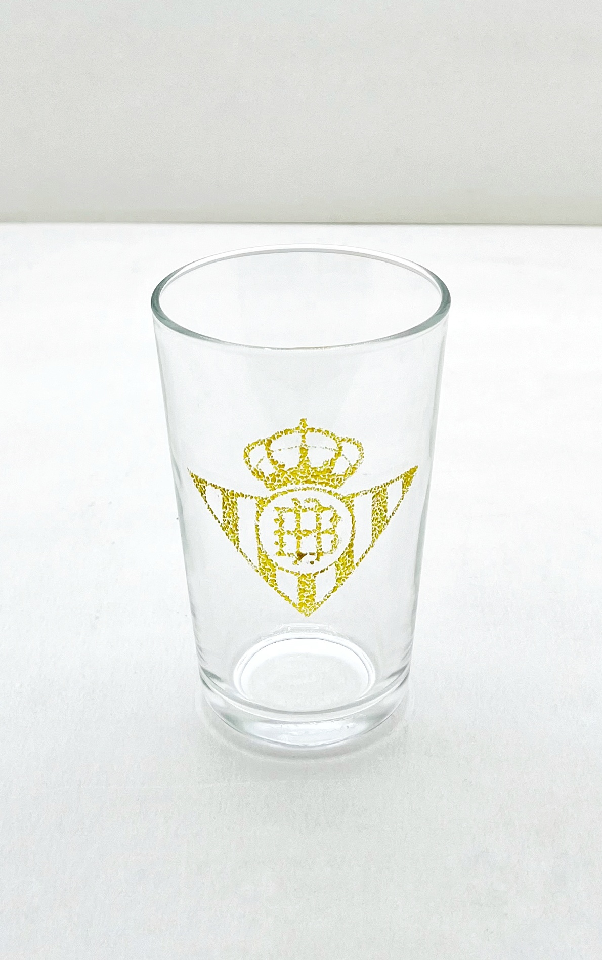 Vaso 45cl personalizado con el escudo del Real Betis, decorado con nuestra granilla dorada.