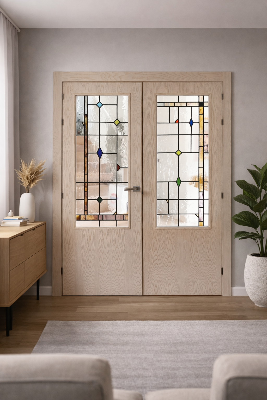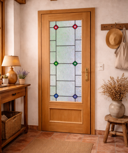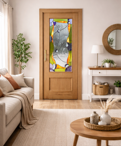 Cada unión en plomo, cada color y cada textura están pensados para crear una pieza única que transforma la puerta en un elemento decorativo con alma.